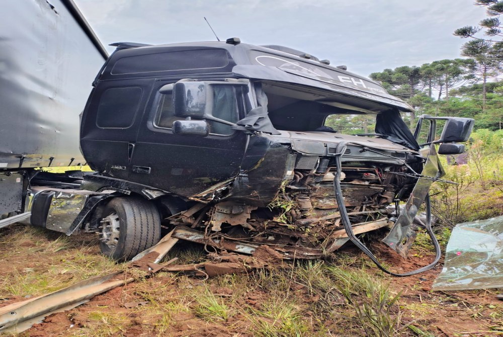 A guarnição do ABTR-204 foi acionada para atendimento de saída de pista envolvendo caminhão tipo carreta Volvo FH 460 de cor preta, conduzido por um homem de 26 anos, morador de Canoinhas, na BR-280, em Irineópolis.